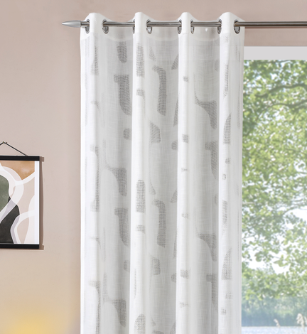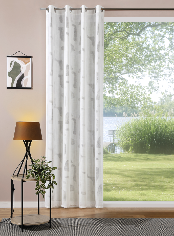 Du suchst einen modernen Vorhang, der Licht durchlässt und deinem Raum gleichzeitig Struktur verleiht? Dieser Ösenvorhang in weißer Leinenstruktur mit abstraktem Gitterdessin ist die perfekte Wahl für dich. Er verbindet eine natürliche Optik mit einem modernen Design und passt ideal zu Loft-, skandinavischen oder puristischen Wohnstilen.
