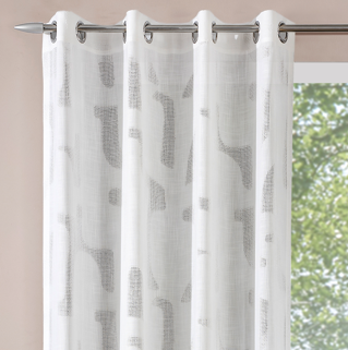 Halbtransparenter Ösenvorhang in Weiß mit moderner Leinenstruktur und eingewebtem Gitterdessin