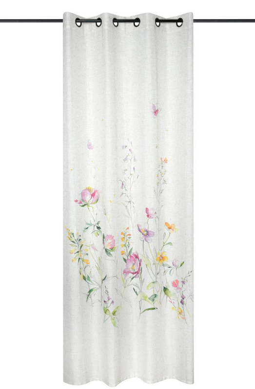 Mit diesem hochwertigen Ösenvorhang bringst du Leichtigkeit und natürliche Eleganz in deine vier Wände. Das exklusive Dessin aus Frankreich besticht durch ein zartes Zusammenspiel aus wilden Blumen und flatternden Schmetterlingen auf einem naturfarbenen Grund. Dank der authentischen Leinenstruktur und der dezenten Melierung wirkt der Vorhang besonders hochwertig und fügt sich perfekt in Wohnstile wie Landhaus oder Shabby Chic ein.