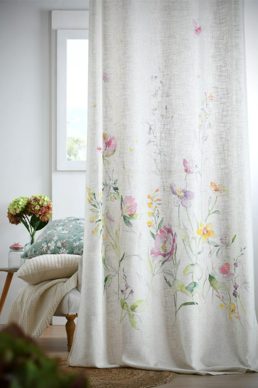 Hol dir den Sommer nach Hause mit dem Ösenvorhang im floralen Leinenlook