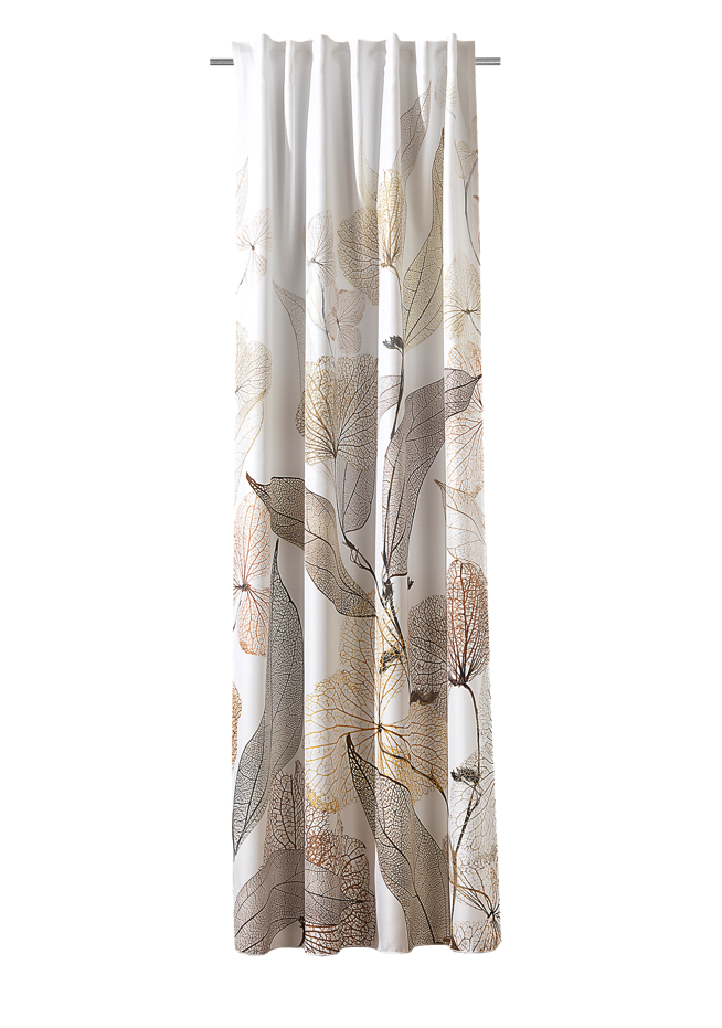 Vorhang Schlaufenbandschal Blätter weiß grün braun blickdicht 140x245cm (BxH)