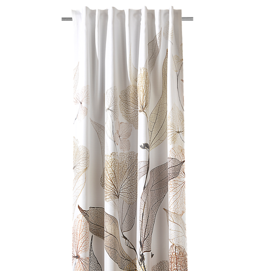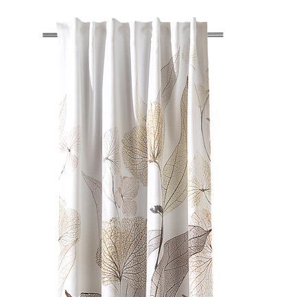 Blickdichter Vorhang mit natürlichem Blättermuster in Weiß, Grün und Braun für eine wohnliche Fensterdekoration