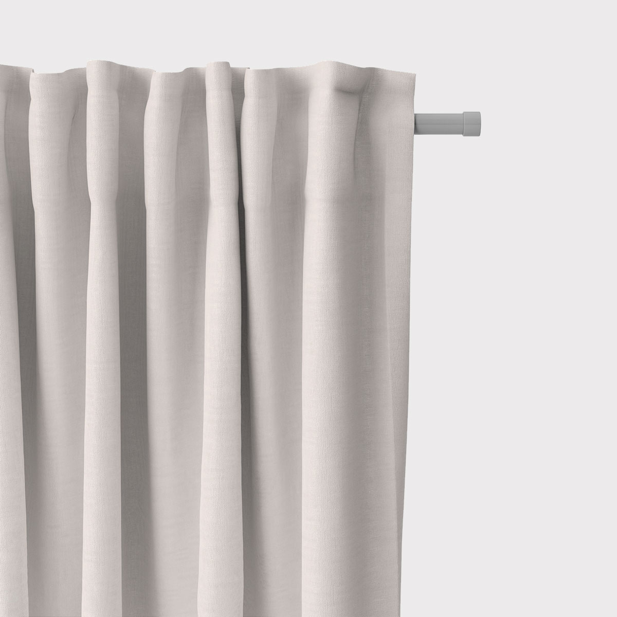 Um die Breite des Vorhangs anzupassen, kannst du die Smokfunktion des Gardinenbands nutzen: Mit Zugschnüren lässt sich am oberen Saum eine dekorative Raffung erzeugen, die dem Vorhang über die gesamte Länge ein besonderes Faltenbild verleiht. Durch Verknoten der Schnüre wird die Raffung fixiert und bleibt auch beim Verschieben des Vorhangs bestehen.