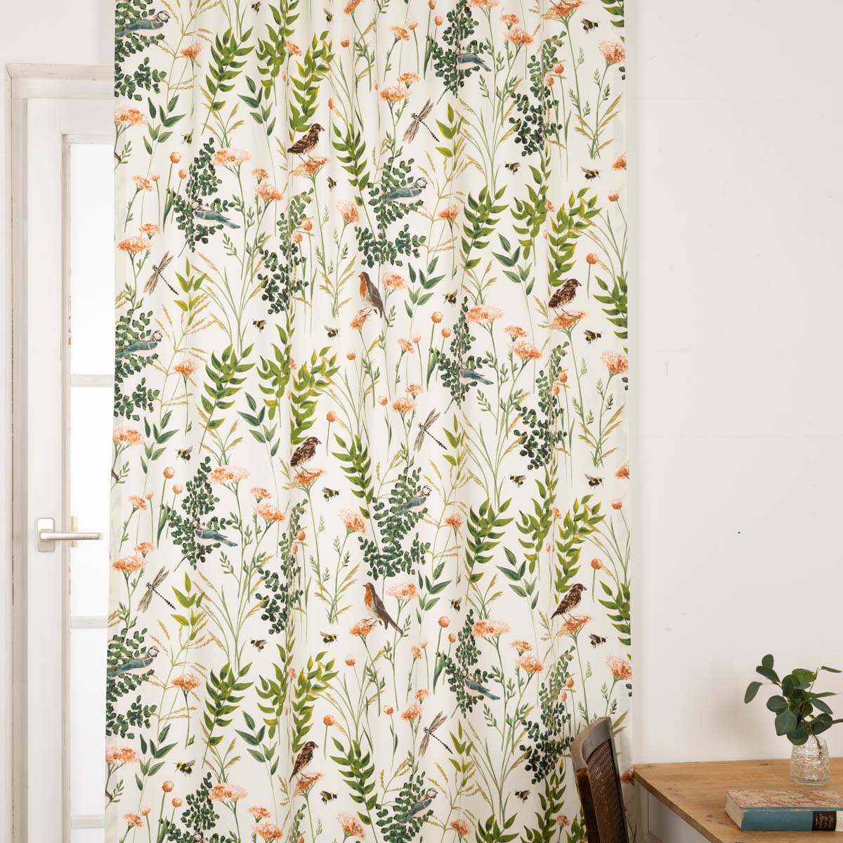 Romantisches Landhaus-Dessin: Der Vorhang Gardenia Blush mit Blumen und Vögeln aus unserer Schöner Leben. Kollektion ist ein Eyecatcher für deine Fenster! Der Vorhang mit dem wunderschönen Dessin ist ein beliebter Hingucker für jeden Raum, ob Wohnzimmer, Esszimmer, Schlafzimmer, Kinderzimmer oder Gästezimmer.