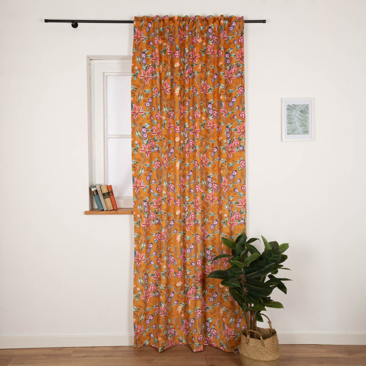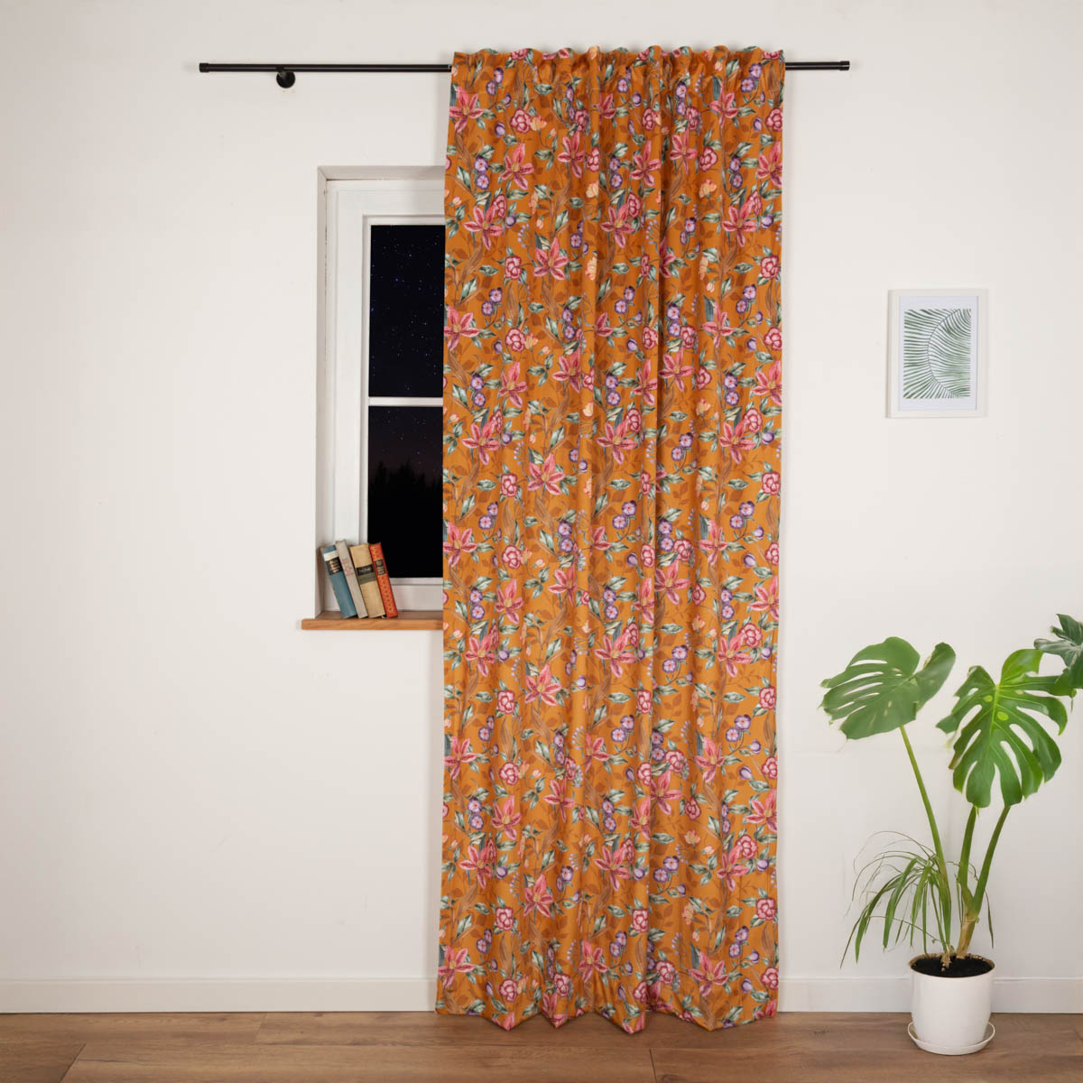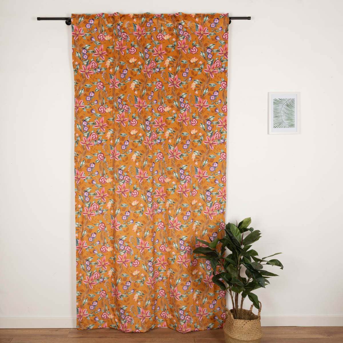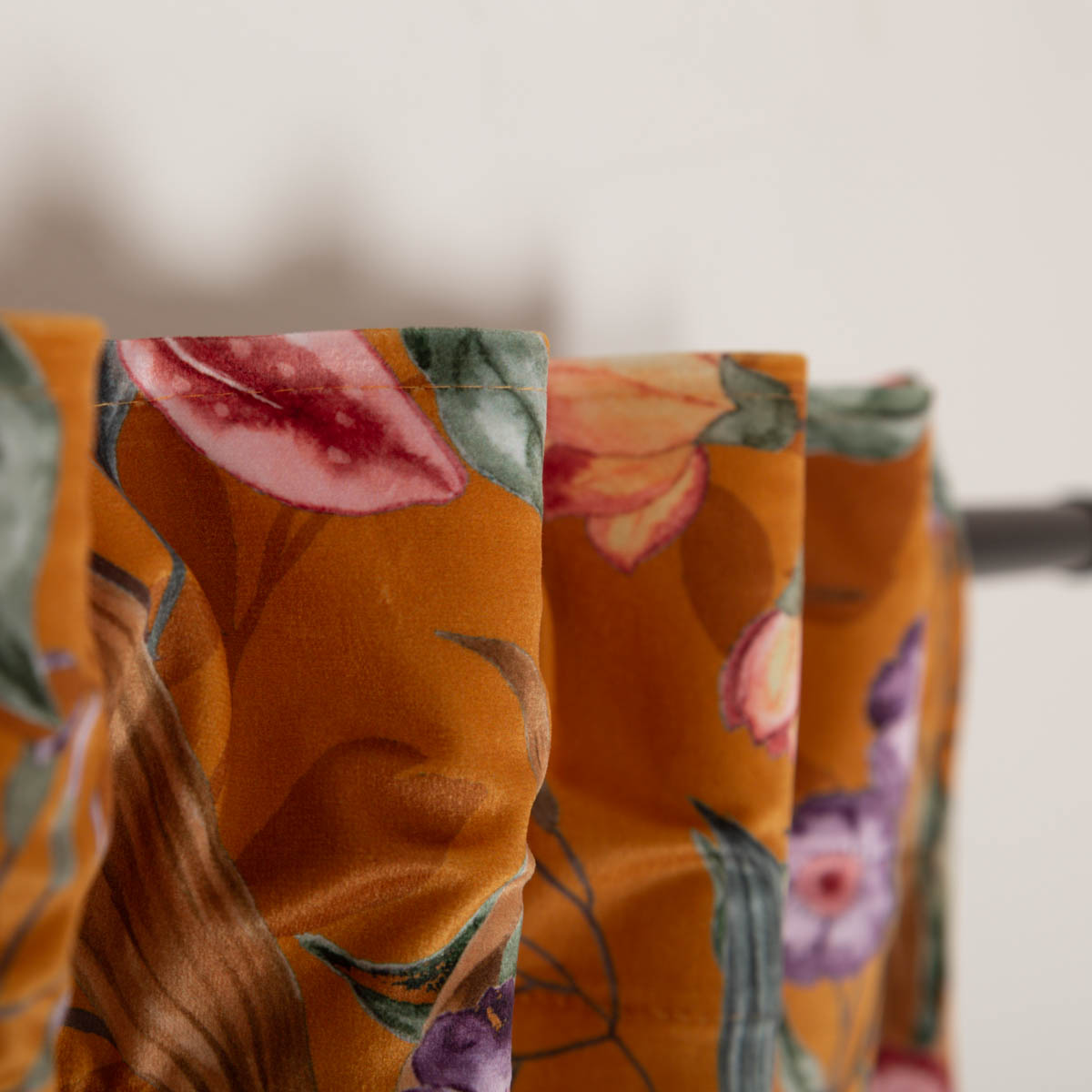 Verleihe deinem Zuhause einen Hauch von französischer Eleganz mit dem Samtvorhang Lilium von SCHÖNER LEBEN. Das extravagante Dessin mit bunten Blumen auf ockergelbem Grund kommt im hochwertigen Digitaldruck besonders klar und schön zur Geltung. Gefertigt aus hochwertigem, weichem Samt und ausgestattet mit einem durchdachten Smok-Schlaufenband, ist dieser Vorhang ideal für individuelle Raumgestaltungen – perfekt passend zu kreativen Wohnkonzepten.