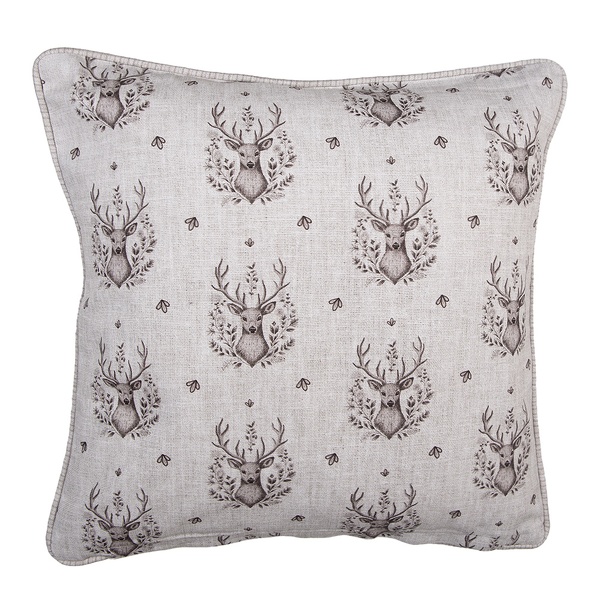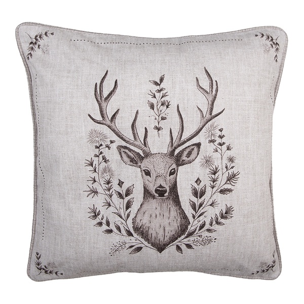 Clayre & Eef Kissenhülle 45 x 45 cm in Beige mit dekorativem Hirschkopf-Motiv für gemütliche Wohnakzente im Landhausstil