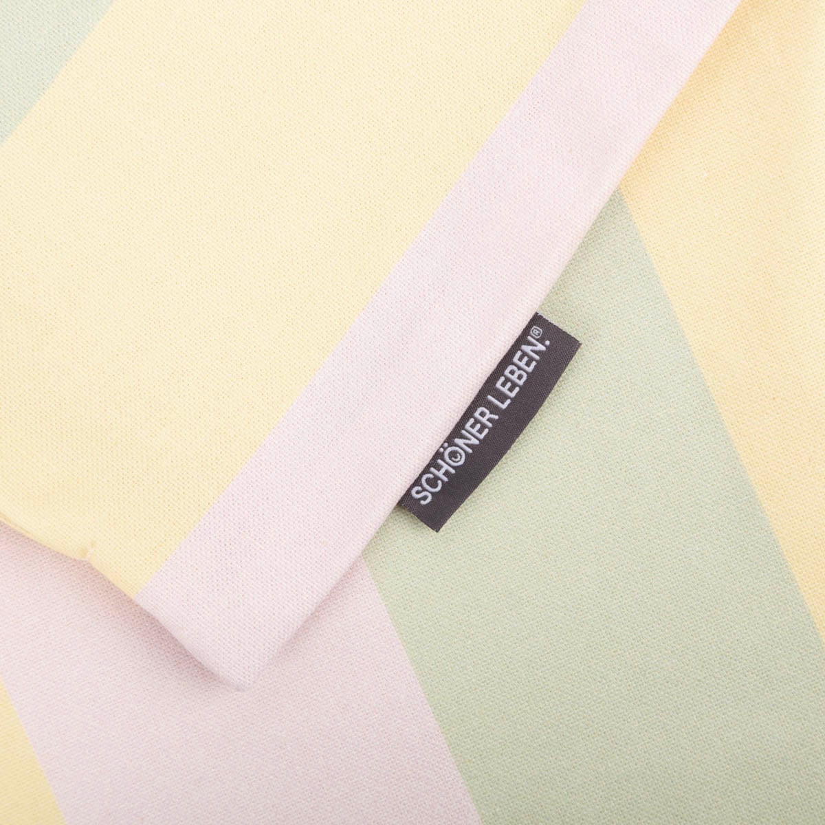 Mit dieser Kissenhülle aus der SCHÖNER LEBEN. Kollektion setzt du frische Akzente in deinem Wohnbereich. Der exklusive Streifen-Digitaldruck in zartem Flieder, Pistazie und Vanille bringt Leichtigkeit und Farbe in dein Zuhause – ob auf dem Sofa, im Bett oder im Lieblingssessel.