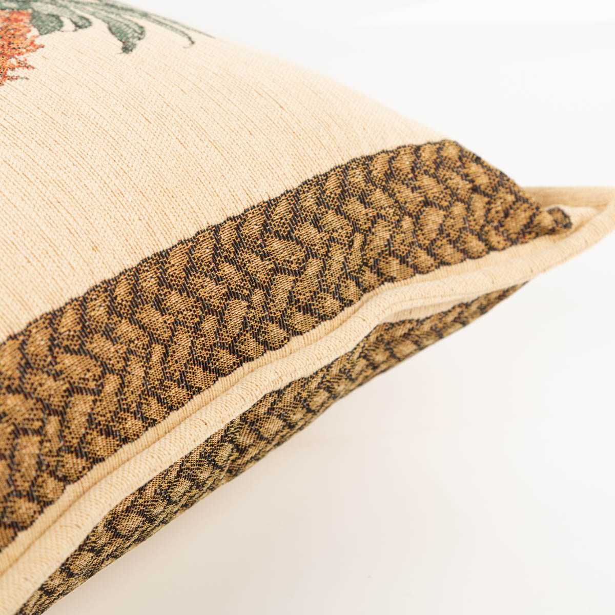 Eingewebtes Ananasmuster: hochwertiger Gobelin in Beige/Braun mit strukturierter Optik, kein aufgedrucktes Muster