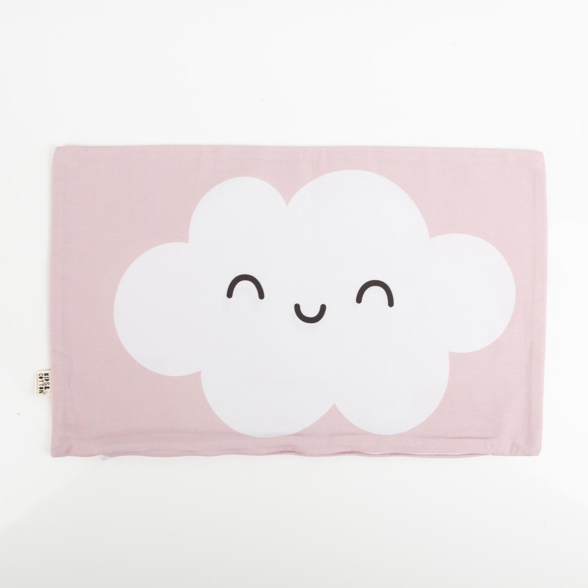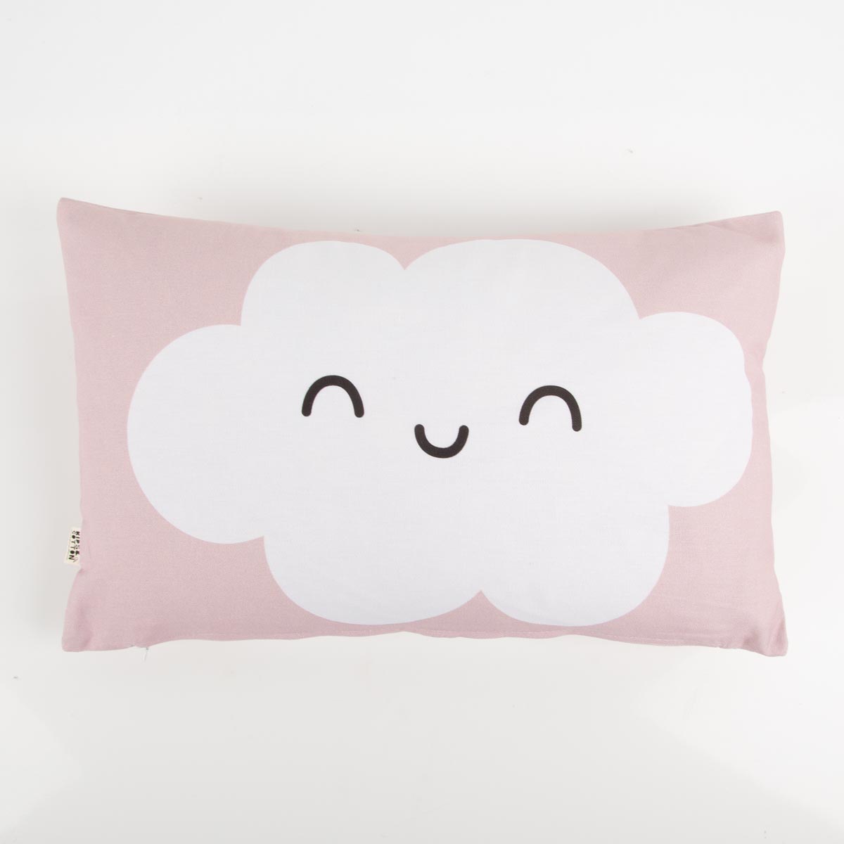 Kissenhülle Wolke mit lachendem Gesicht Kinderkissen aus Baumwolle rosa 30x50cm
