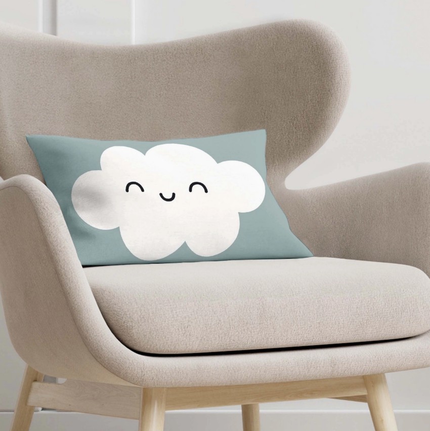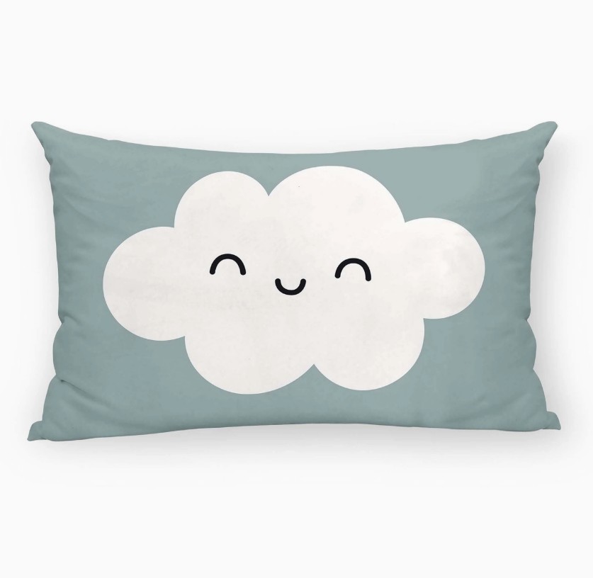 Das süße Wolken-Gesicht bringt sofort gute Laune ins Kinderzimmer. Die Kissenhülle in 30x50cm ist perfekt für Bett, Kuschelecke oder Lieblingssessel und lässt sich dank Reißverschluss kinderleicht beziehen.