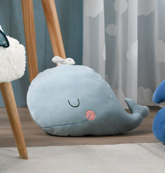 Kuschelig weiches Kinderkissen in Walform für Baby- und Kinderzimmer