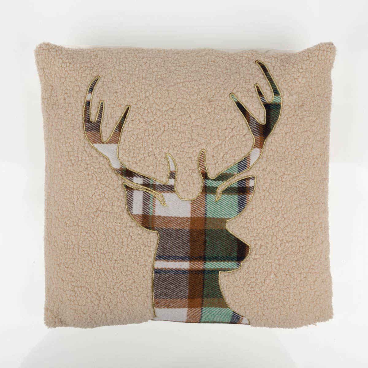 Kissen Hirsch 45x45 cm Teddyplüsch mit Applikation beige