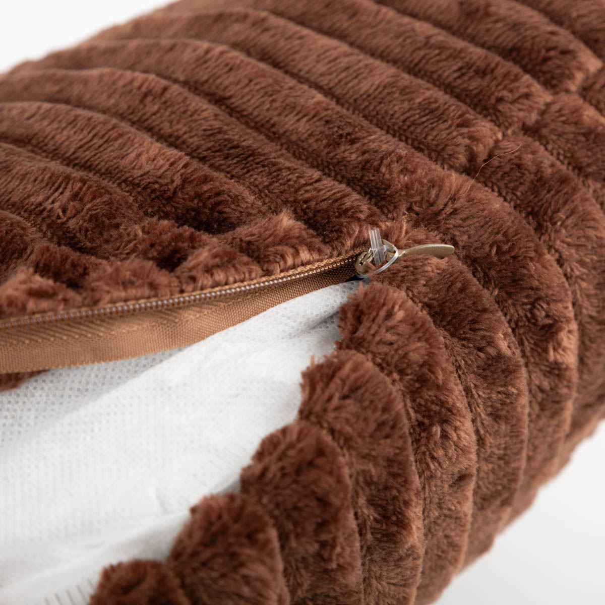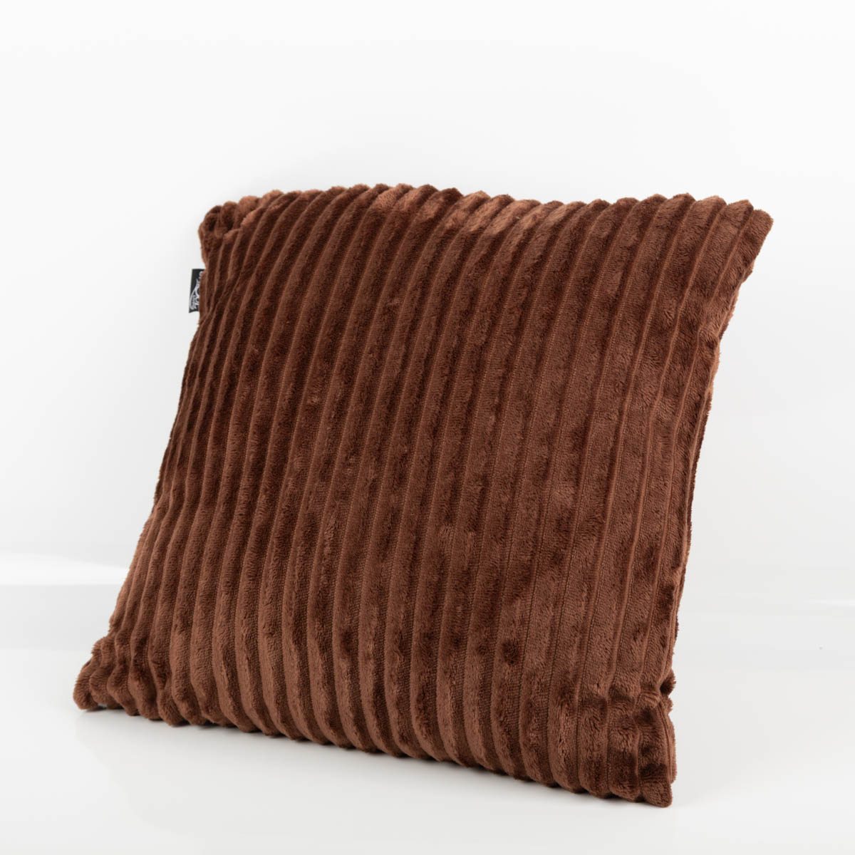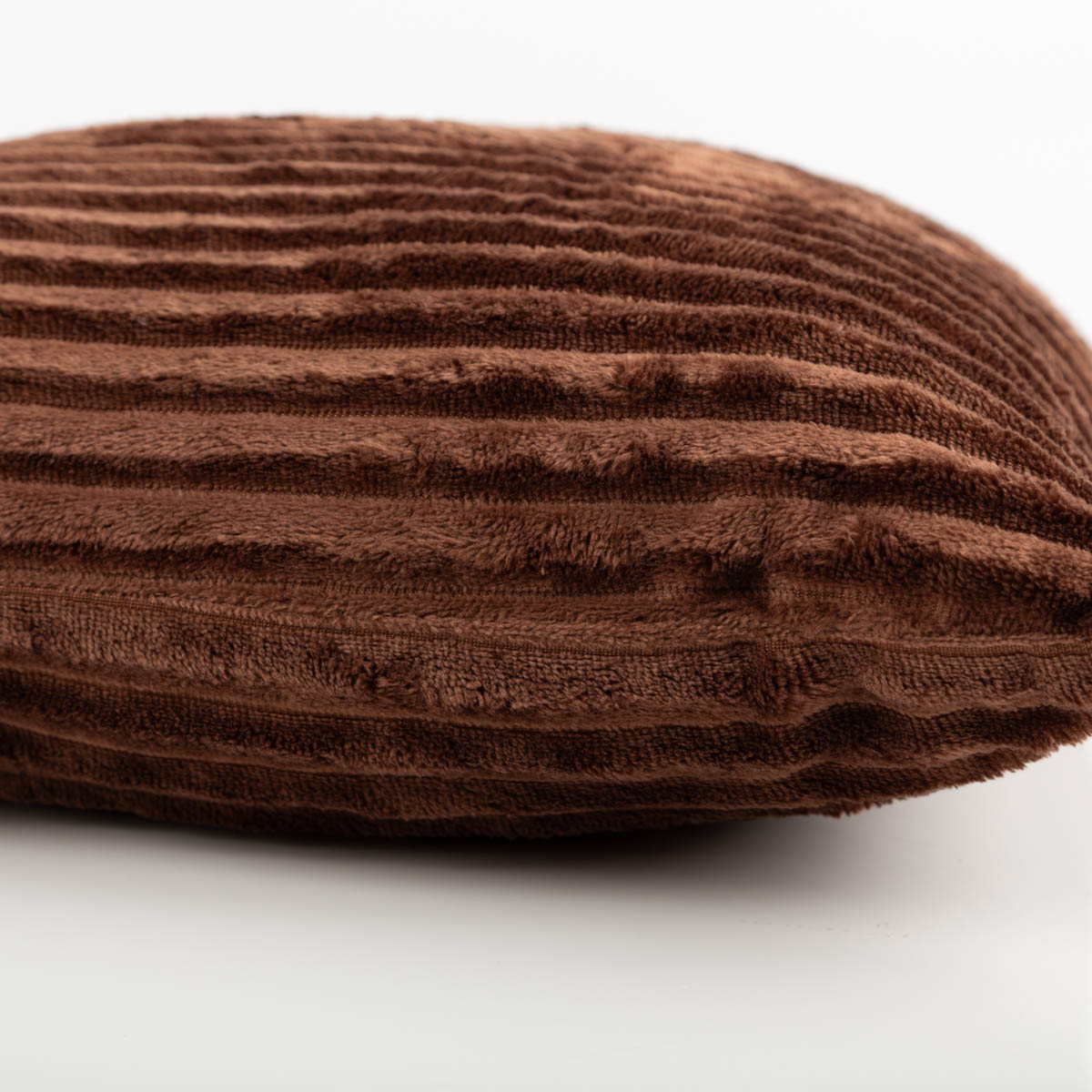 Kuschelig weiches Plüschkissen mit breiten Cordstreifen in Braun