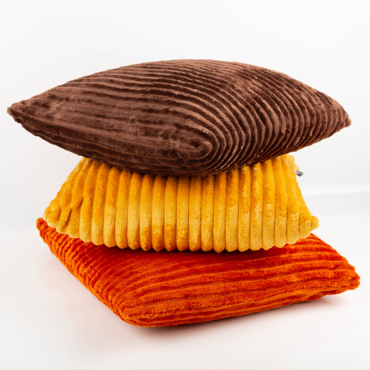 Kuschelkissen aus Plüsch Cordoptik Streifen braun 45x45cm