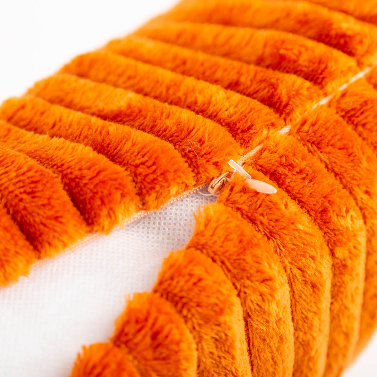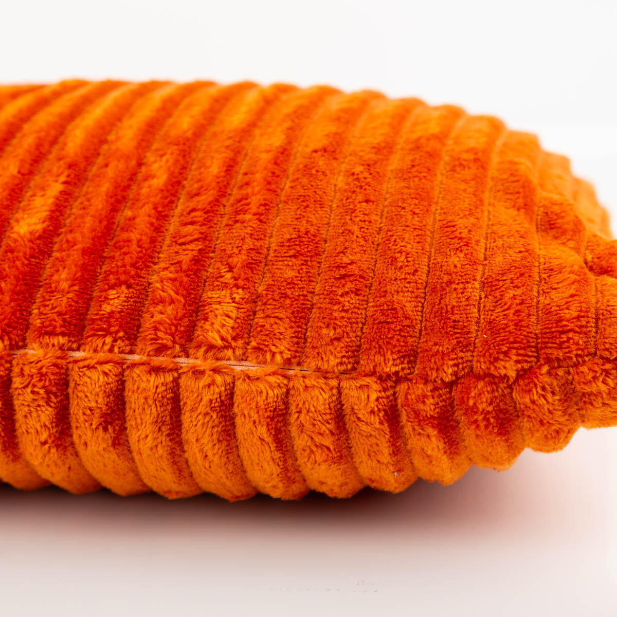 Kuschelig weiches Plüschkissen mit breiten Cordstreifen in Orange