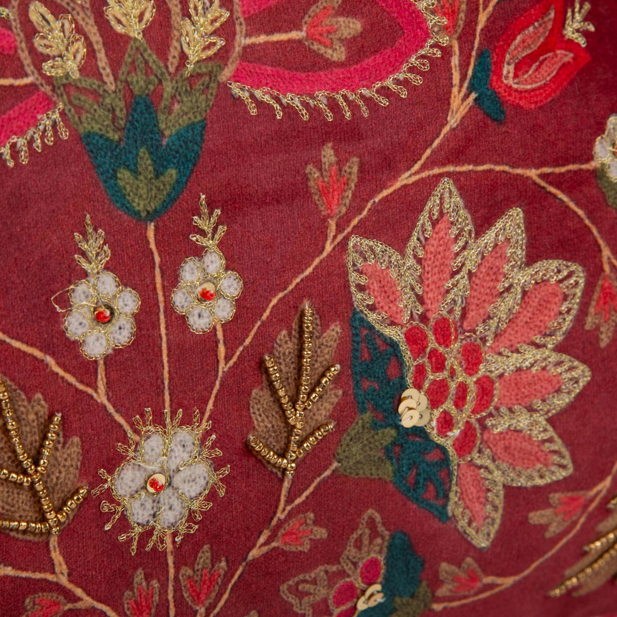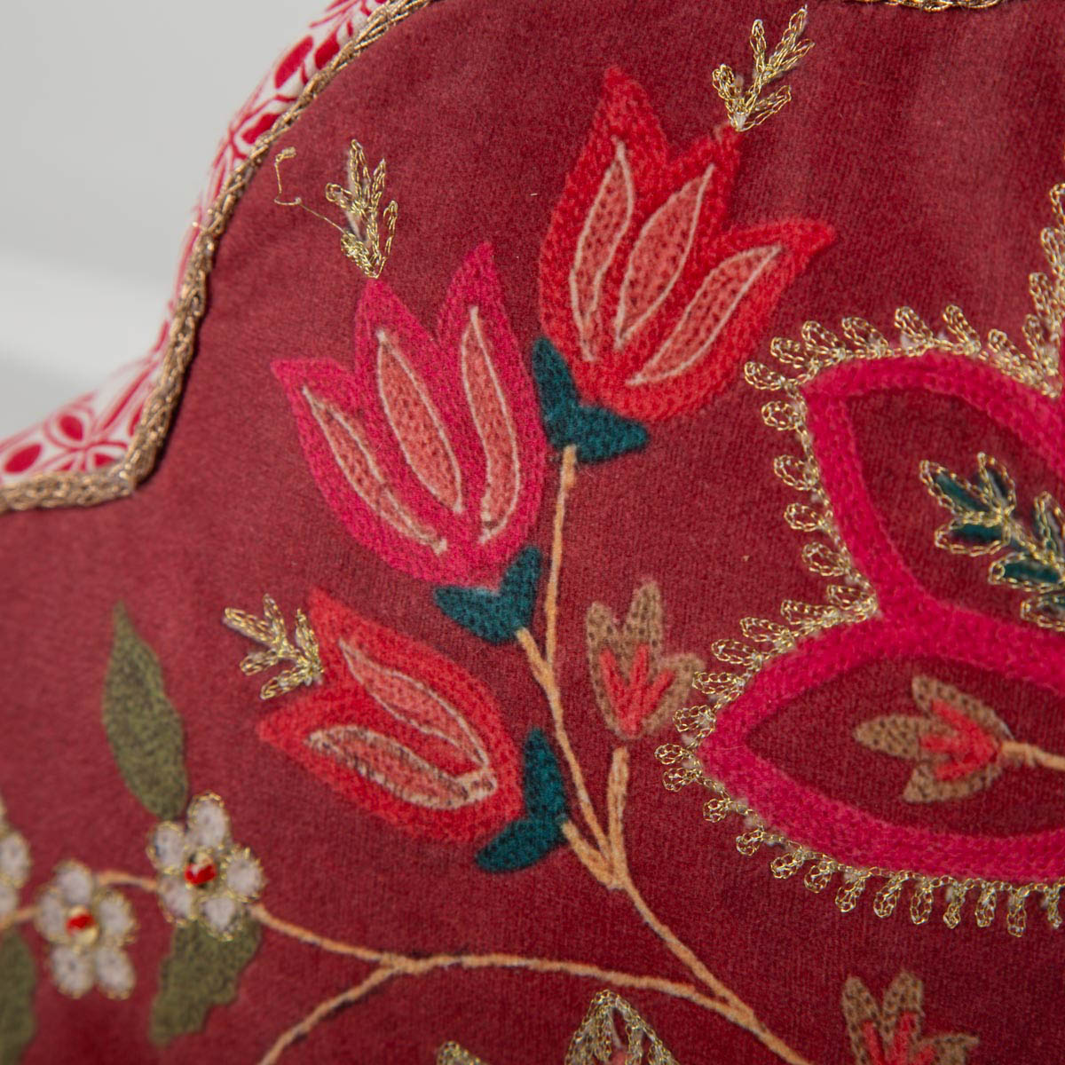 Dekokissen mit floralen Stickereien – Samt trifft Glanzdetails