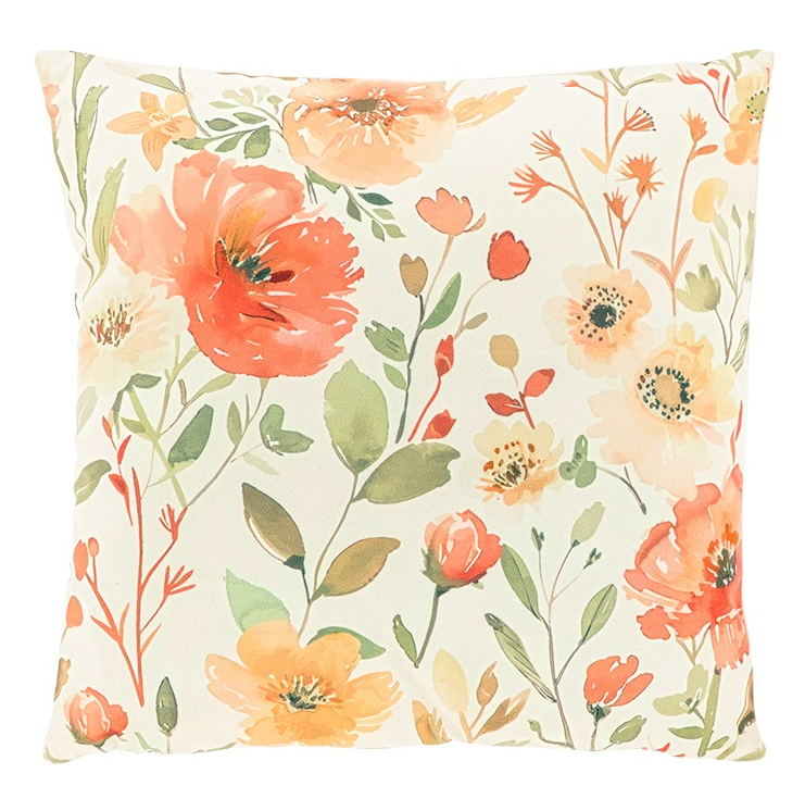 Samtkissenhülle Blumen vanille/orange – frühlingsfrisch in 45x45 cm