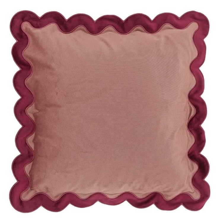Edles Samtkissen mit Wellenrand – Rosé trifft Bordeaux