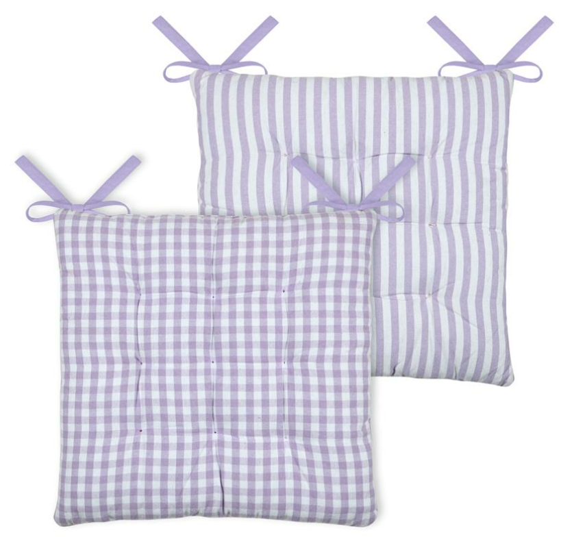 Sitzkissen mit Bindebänder zweiseitig Karo Streifen lila weiß 40x40cm