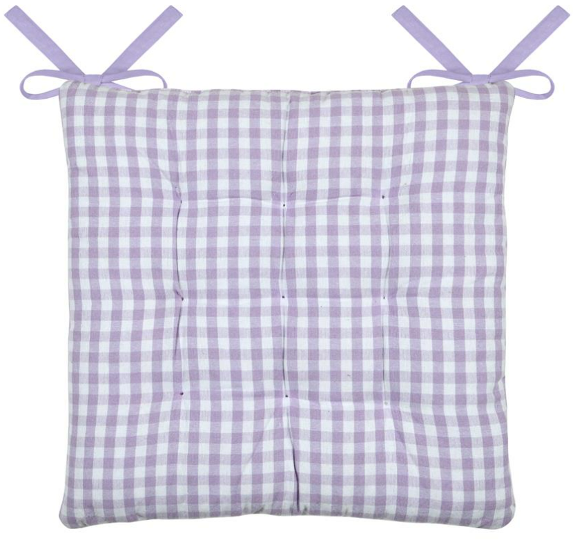 Sitzkissen mit Bindebändern Karo Streifen lila weiß 40x40 cm