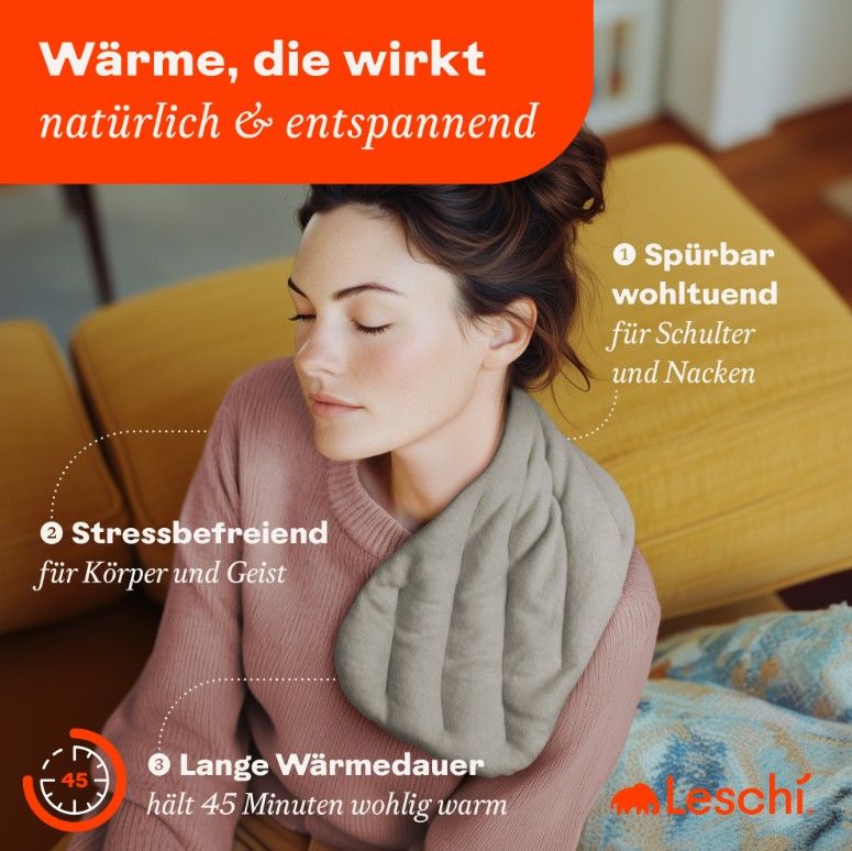 Das Wärmekissen lässt sich in der Mikrowelle in wenigen Minuten aufwärmen und spendet bis zu 45 Minuten lang wohltuende Wärme – ganz ohne Stromkabel oder Chemie.