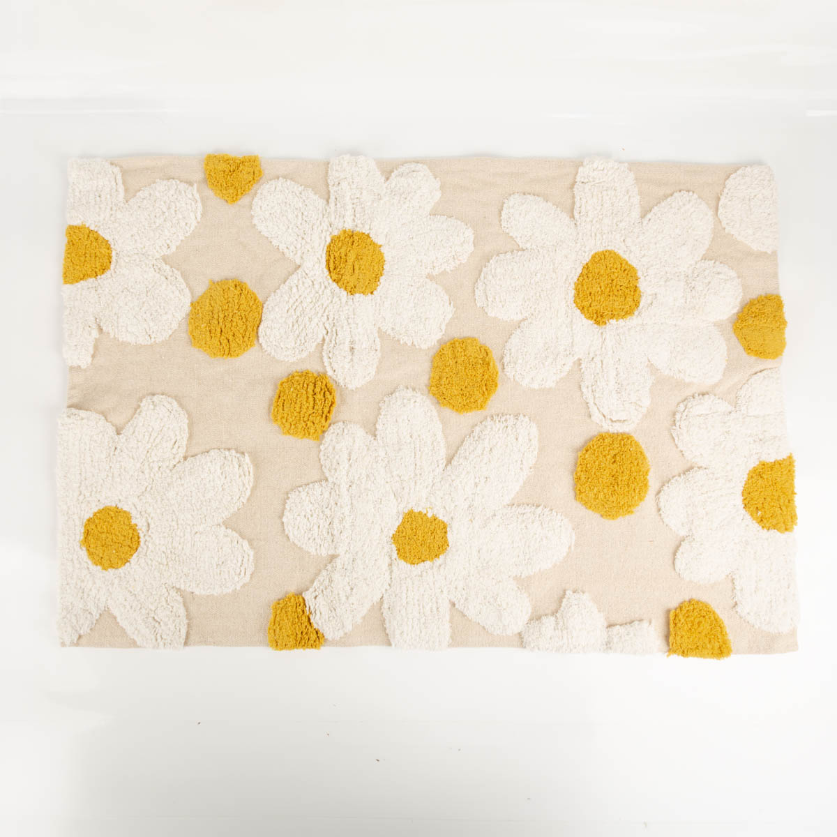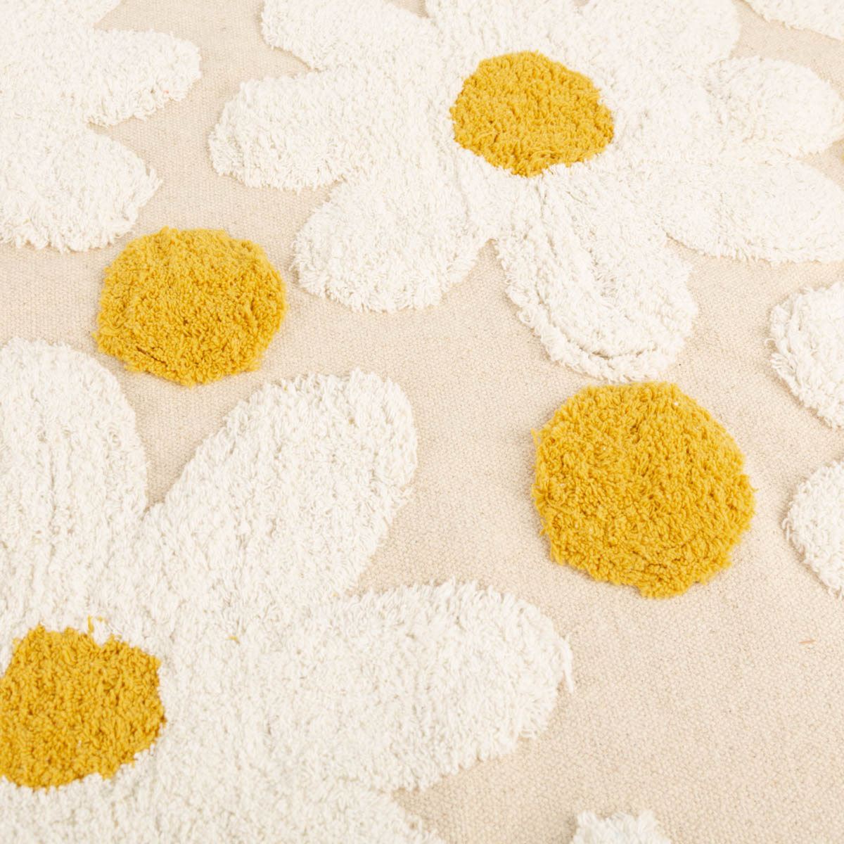 Teppich Gänseblümchen getuftet Baumwolle waschbar natur gelb weiß 60x90cm