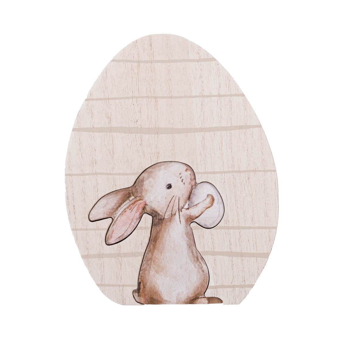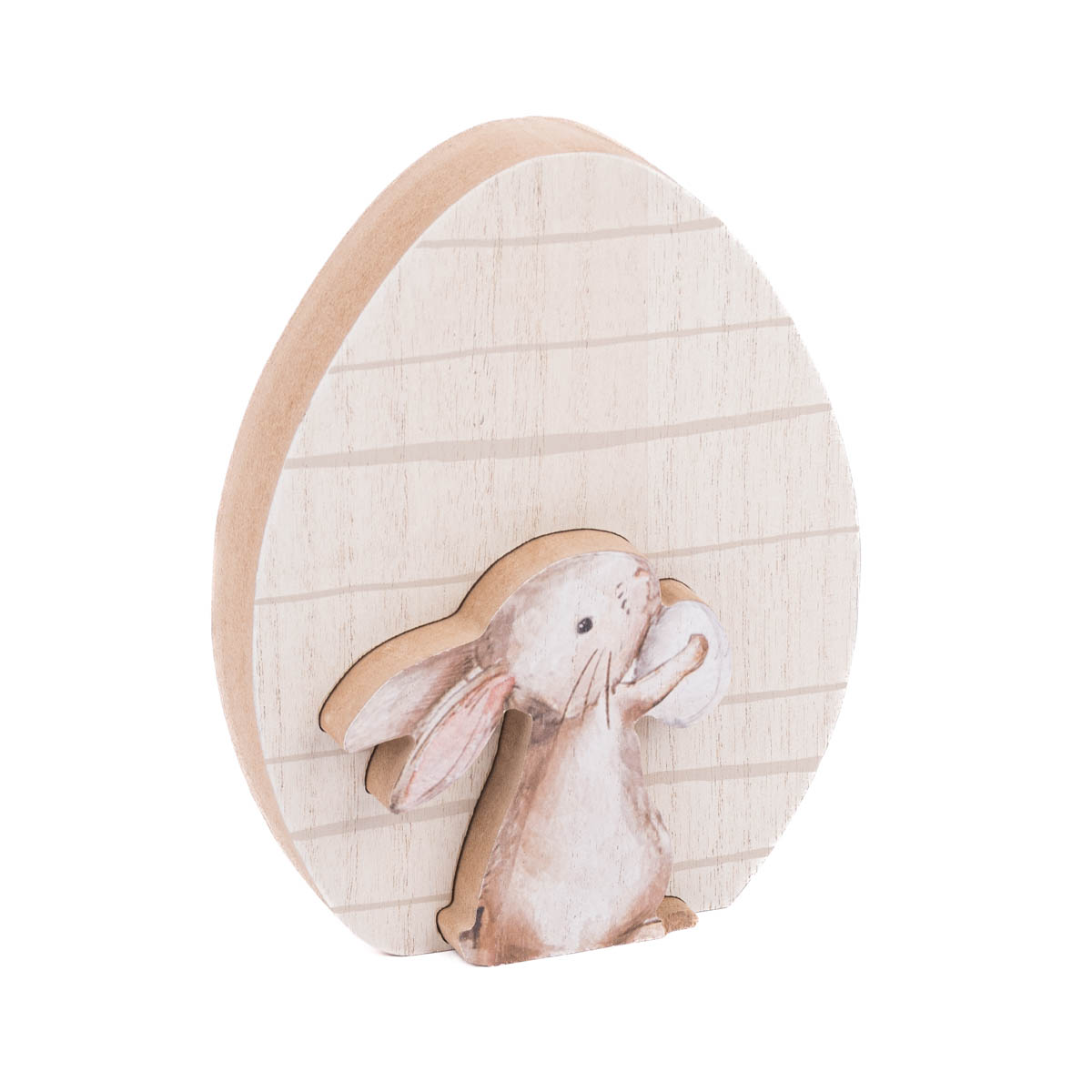 Dekofigur Ei mit Hasen Cut-Out aus MDF gepunktet oder gestreift natur beige braun 14x2,5x18cm