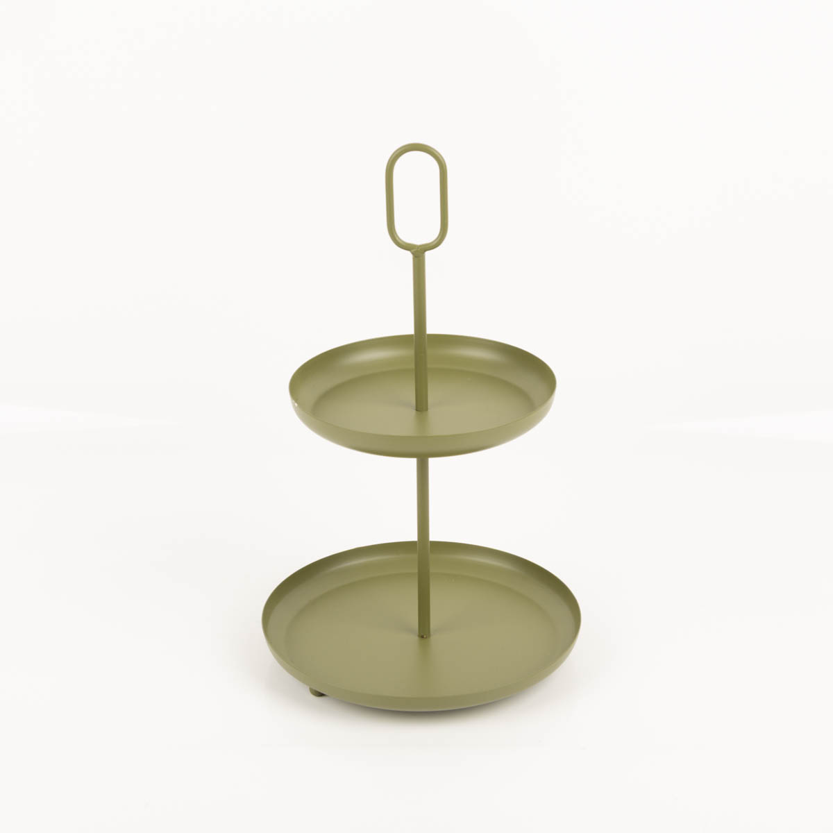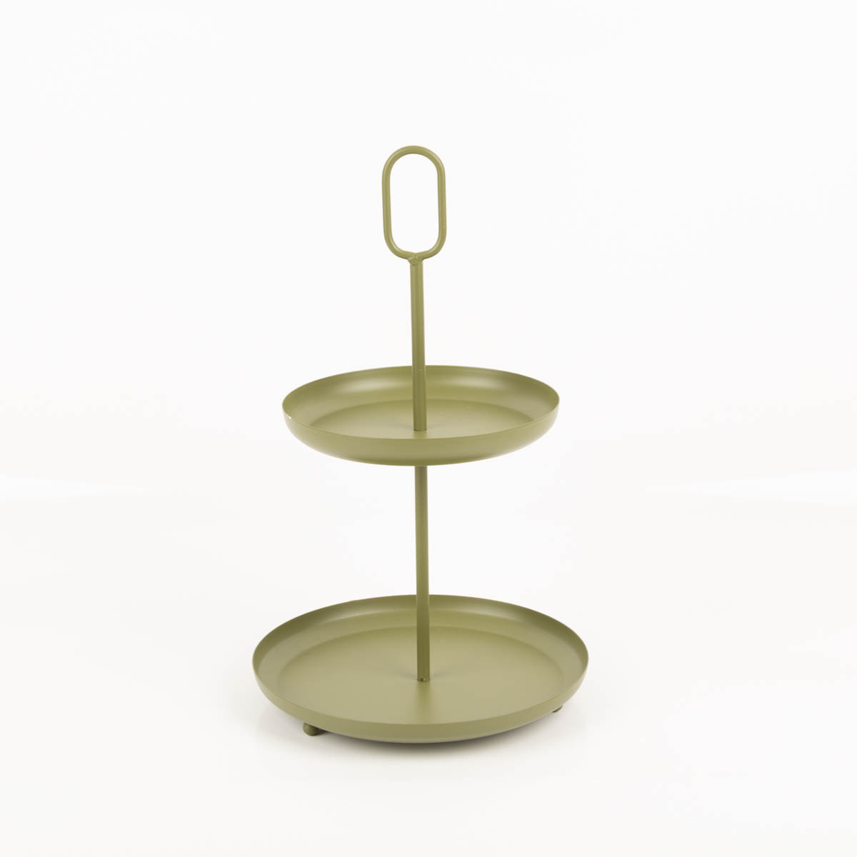 Zweistufige Etagere von Boltze aus grünem Metall zum stilvollen Präsentieren von Obst, Gebäck, Snacks und kleinen Häppchen