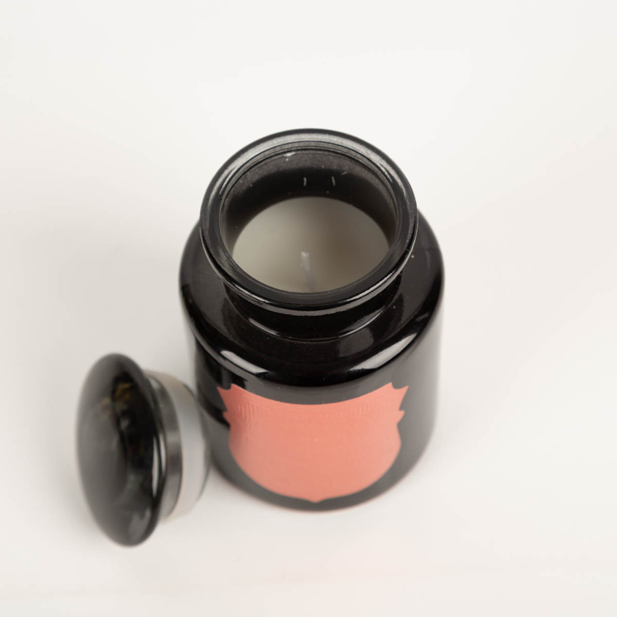 Die Duftkerze wird aus Sojawachs gefertigt und befindet sich in einem schweren Glasgefäß im klassischen Apothekerstil. Das dunkle Glas unterstreicht den eleganten Charakter und macht die Kerze auch unangezündet zu einem dekorativen Wohnaccessoire.
