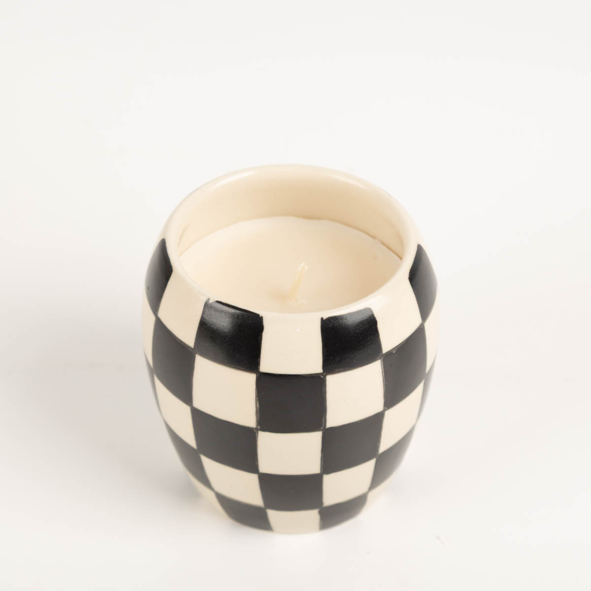 Handbemalte Duftkerze im eleganten Checkmate-Design