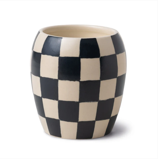 Die Duftkerze Checkmate von Paddywax interpretiert den klassischen Checkerboard-Print modern und stilvoll. Der handbemalte Keramiktopf in black wirkt elegant, ruhig und ausdrucksstark. Jede Kerze ist ein Unikat und setzt ein klares Designstatement in deinem Wohnraum.