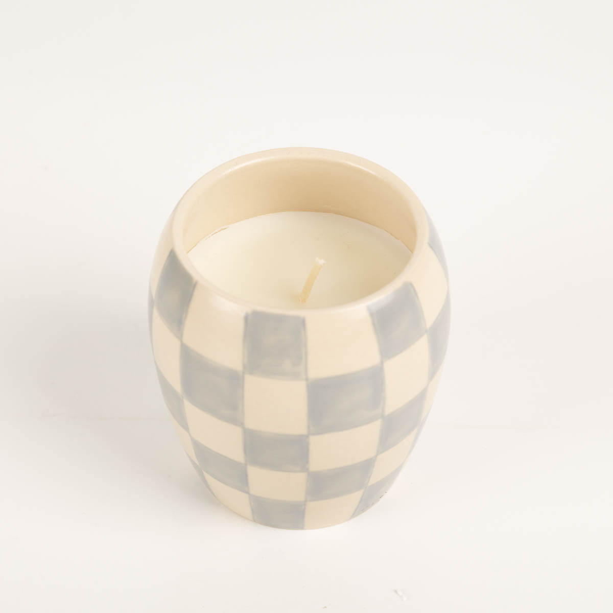 Handbemalte Duftkerze im modernen Checkmate-Design