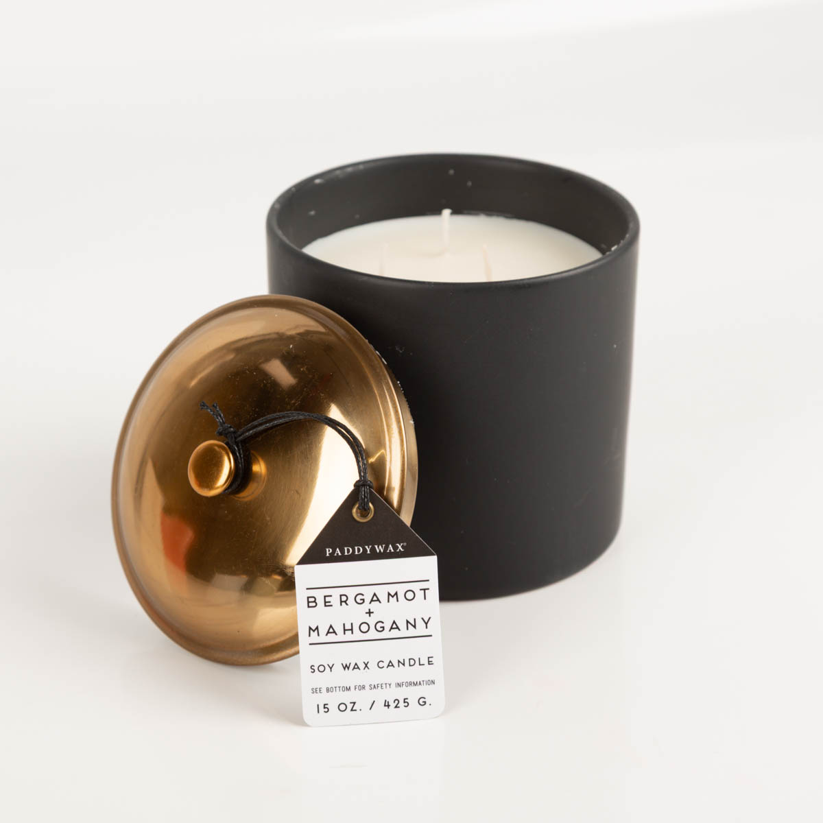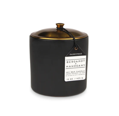Duftkerze Sojakerze Hygge Black Bergamot & Mahagoni 425g mit 3 Dochten im Keramiktopf mit Metalldeckel von Paddywax