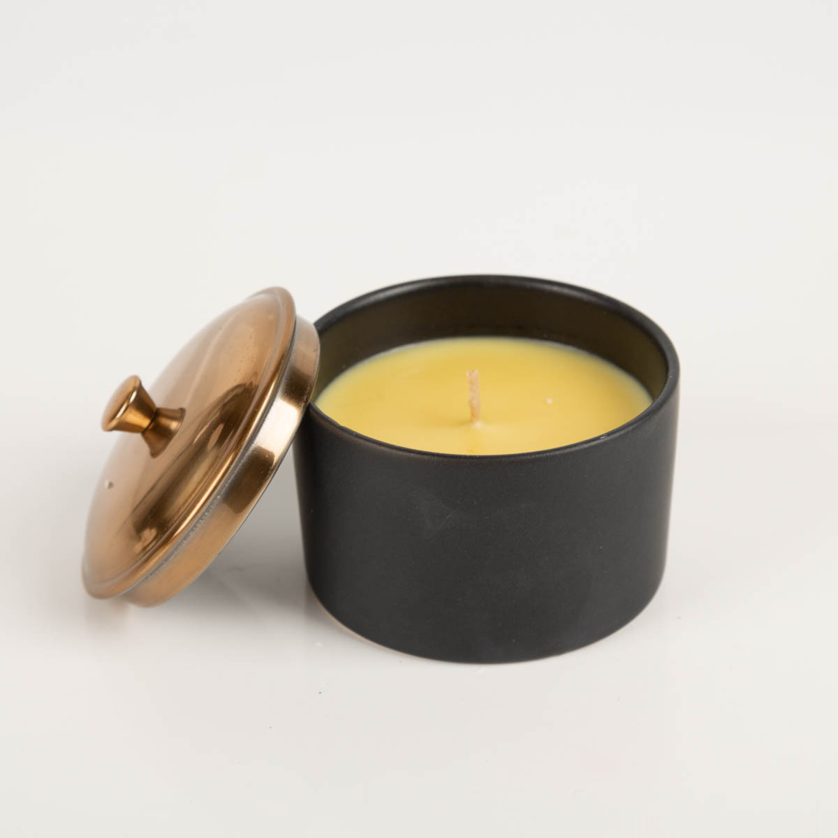 Kompakte Sojaduftkerze im schwarzen Keramiktopf