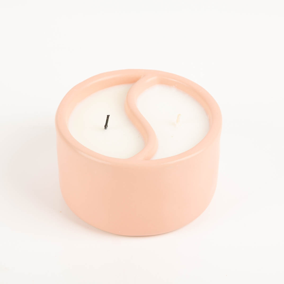 Yin-Yang Duftkerze mit zwei getrennten Düften in einem Keramiktopf