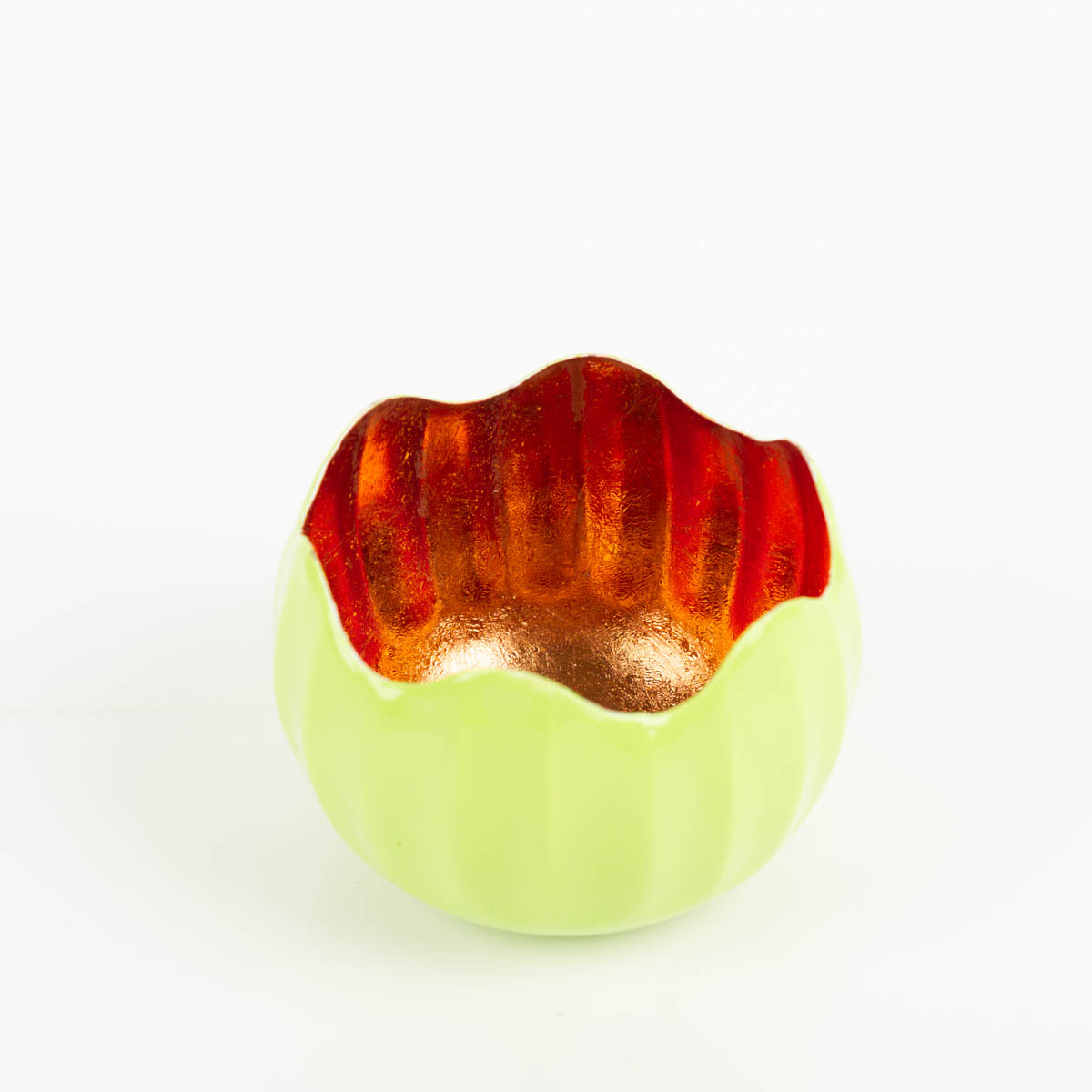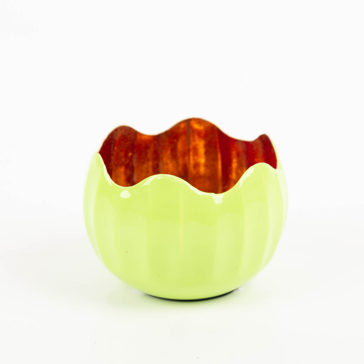 WARMER LICHTEFFEKT: Windlicht Holi in Neon-Grün mit kupferfarbener Innenseite – reflektiert Kerzenlicht weich und gemütlich