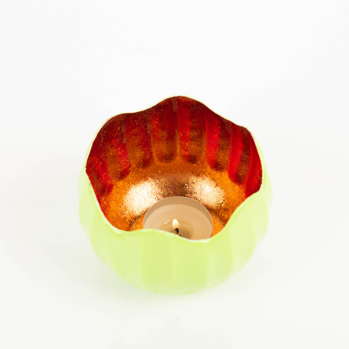 Windlicht Holi Neon-Grün Kupfer: dein Farb-Statement mit warmem Kerzenlicht
