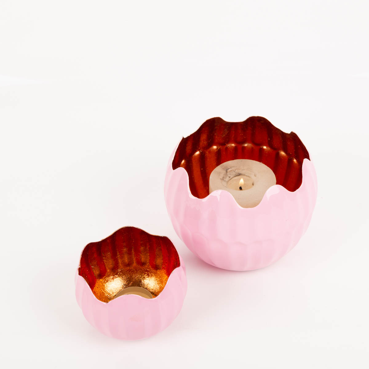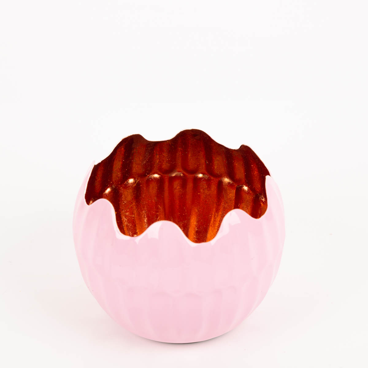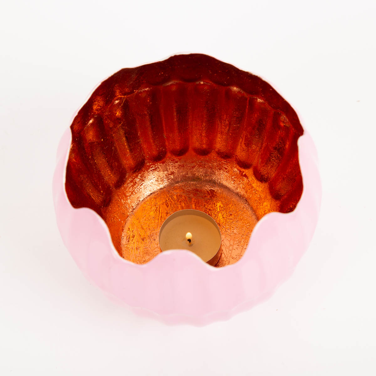 WARMER LICHTEFFEKT: Windlicht Holi in Rosa mit kupferfarbener Innenseite – reflektiert Kerzenlicht weich und gemütlich