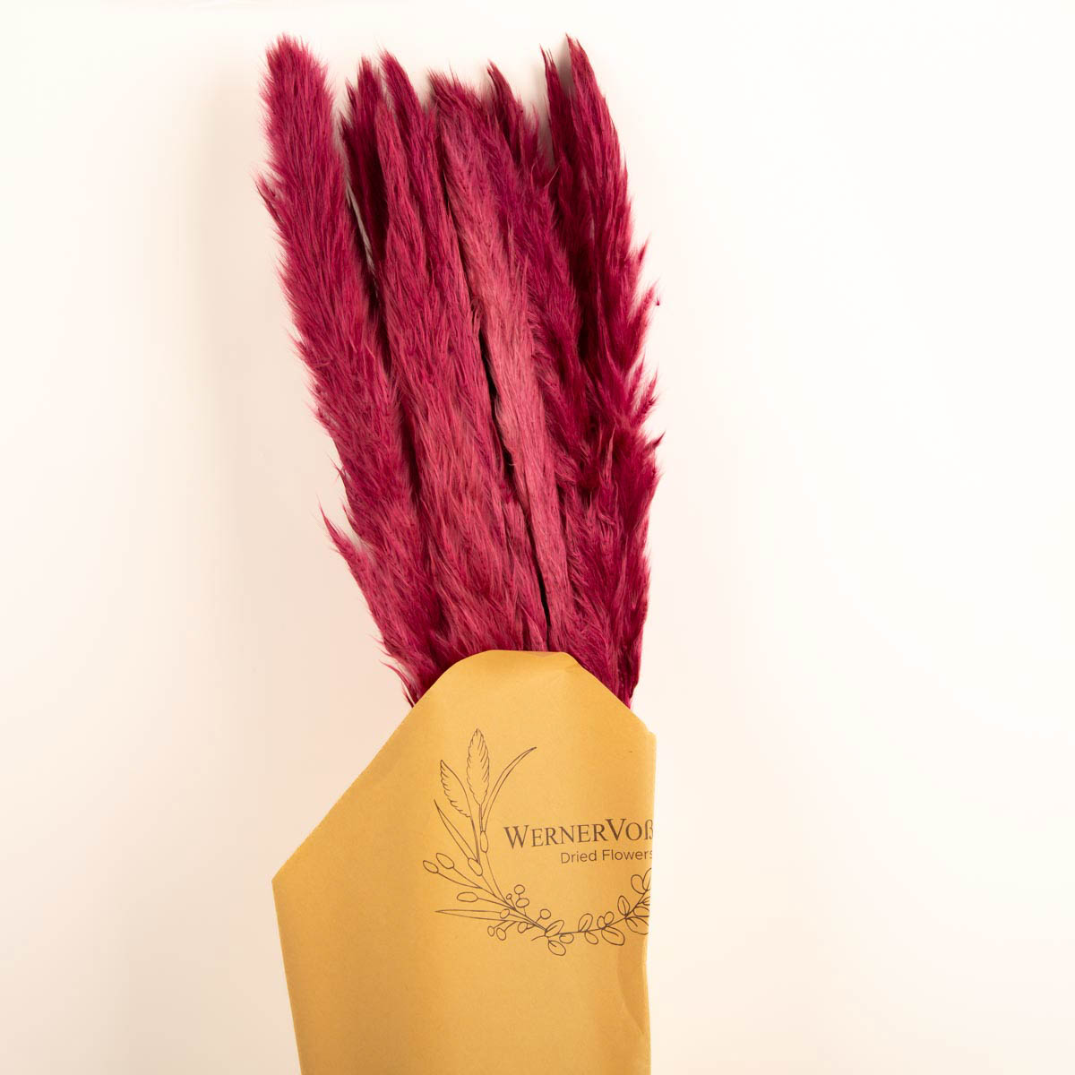 Mit diesem pinkfarbigen Pampasgras setzt du eindrucksvolle Akzente in deiner Deko. Das Bündel besteht aus 15 Stielen, die durch ihre kräftige Farbe und flauschige Struktur sofort ins Auge fallen. Mit einer Länge von ca. 70–80 cm eignet sich das Pampasgras perfekt für Vasen, Solo-Arrangements oder als Teil eines farbigen Trockenblumenstraußes.