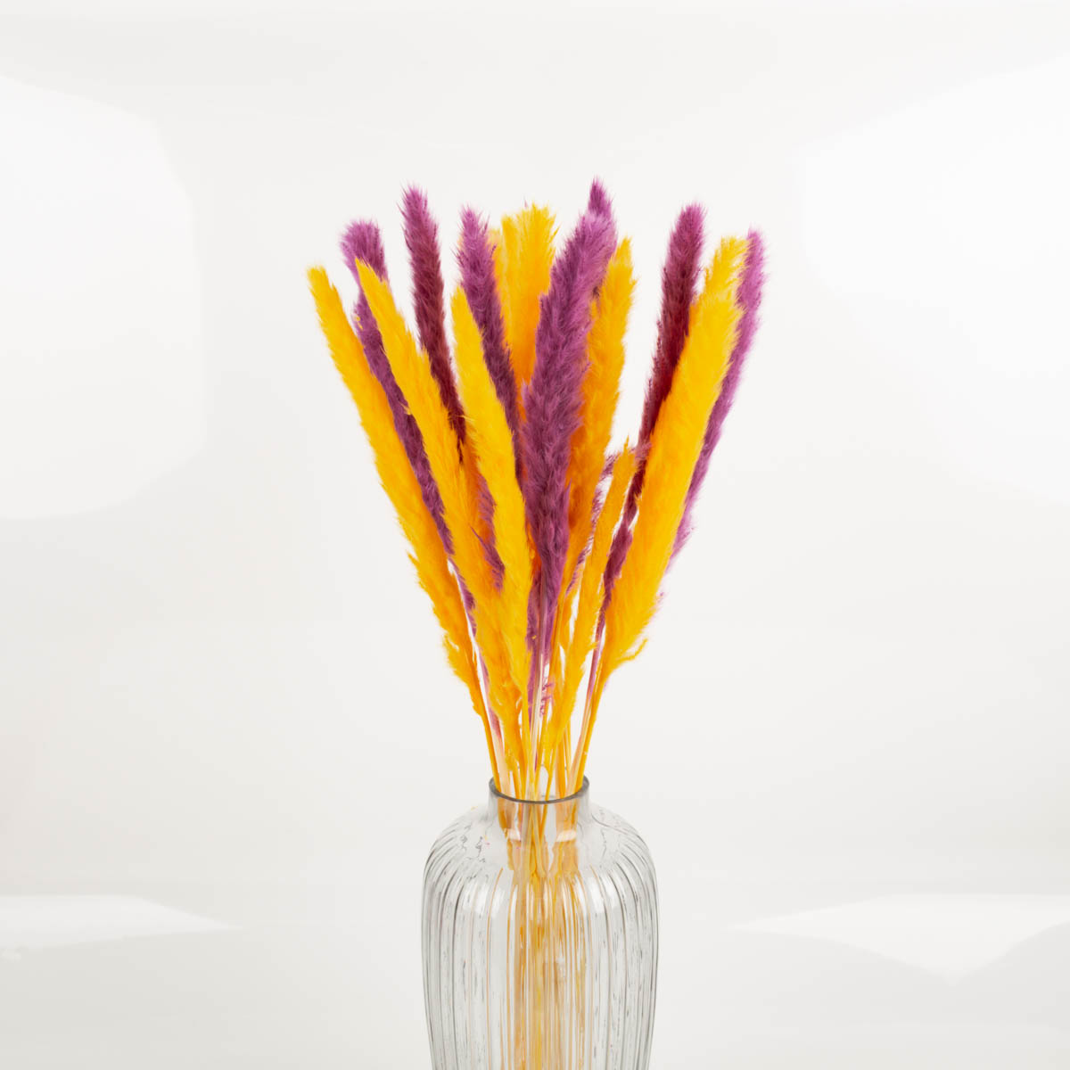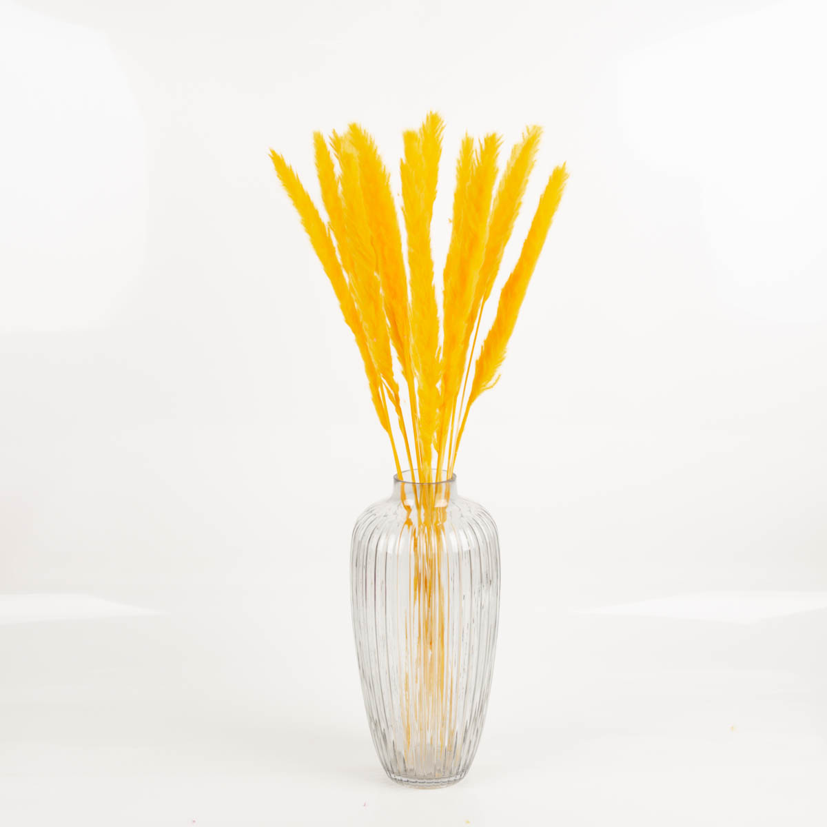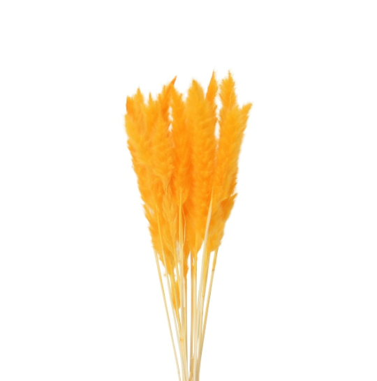 Mit diesem getrockneten Pampasgras in Gelb holst du dir sofort Wärme und Leuchtkraft ins Zuhause. Die flauschigen Rispen wirken weich, voluminös und setzen in hohen Vasen, Solo-Arrangements oder als Teil eines Trockenblumenstraußes einen frischen, modernen Farbakzent. Mit ca. 70–80 cm Länge kommt das Pampasgras besonders schön in Bodenvasen oder hohen Glasvasen zur Geltung.