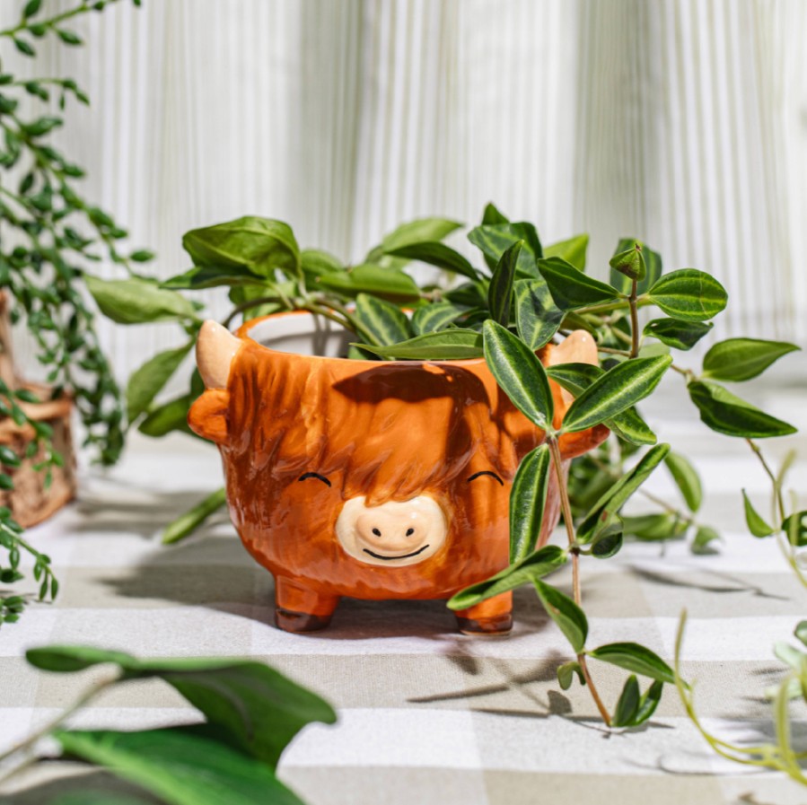 Niedlicher Übertopf im Highland-Cow-Design für gute Laune