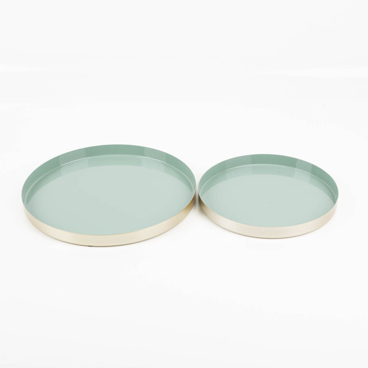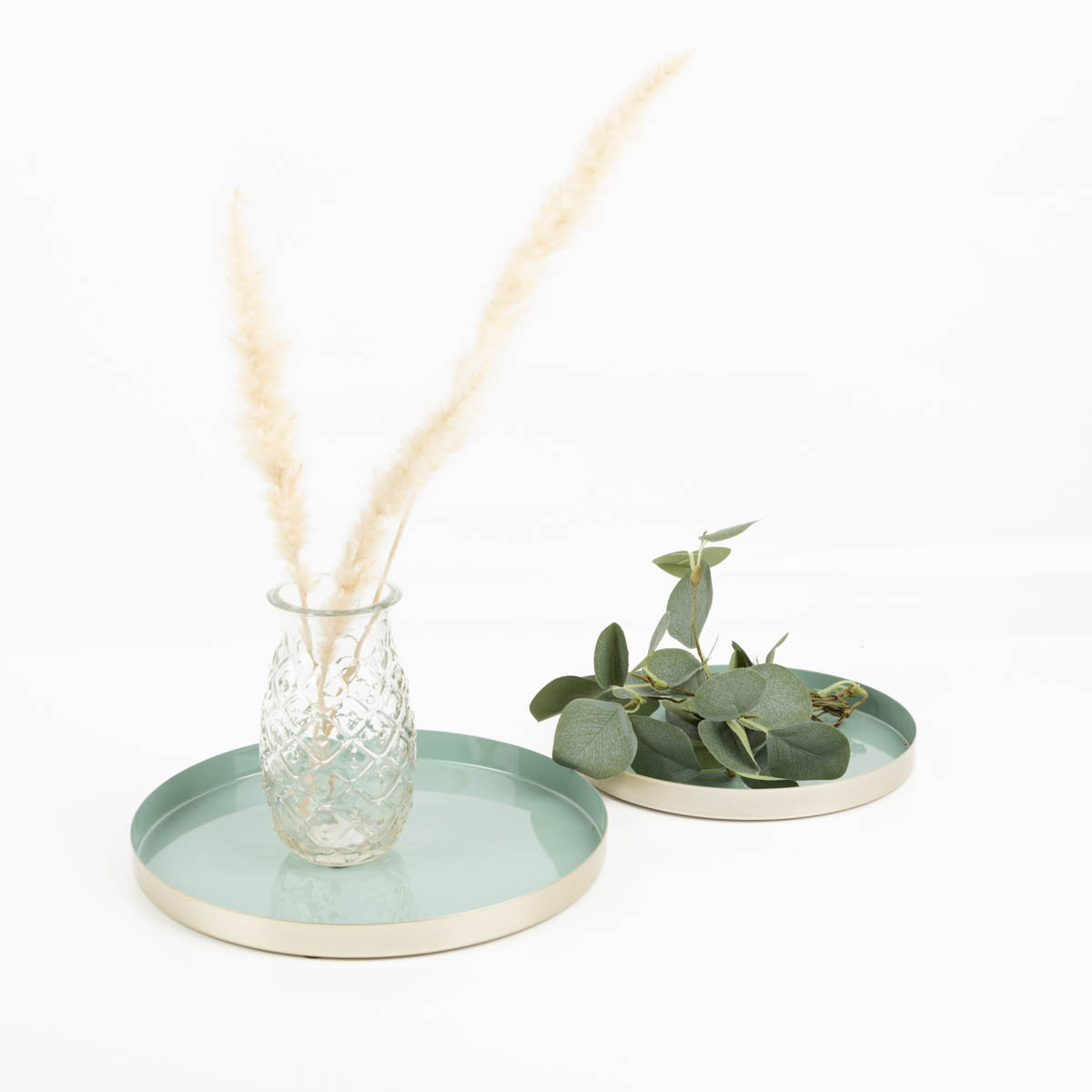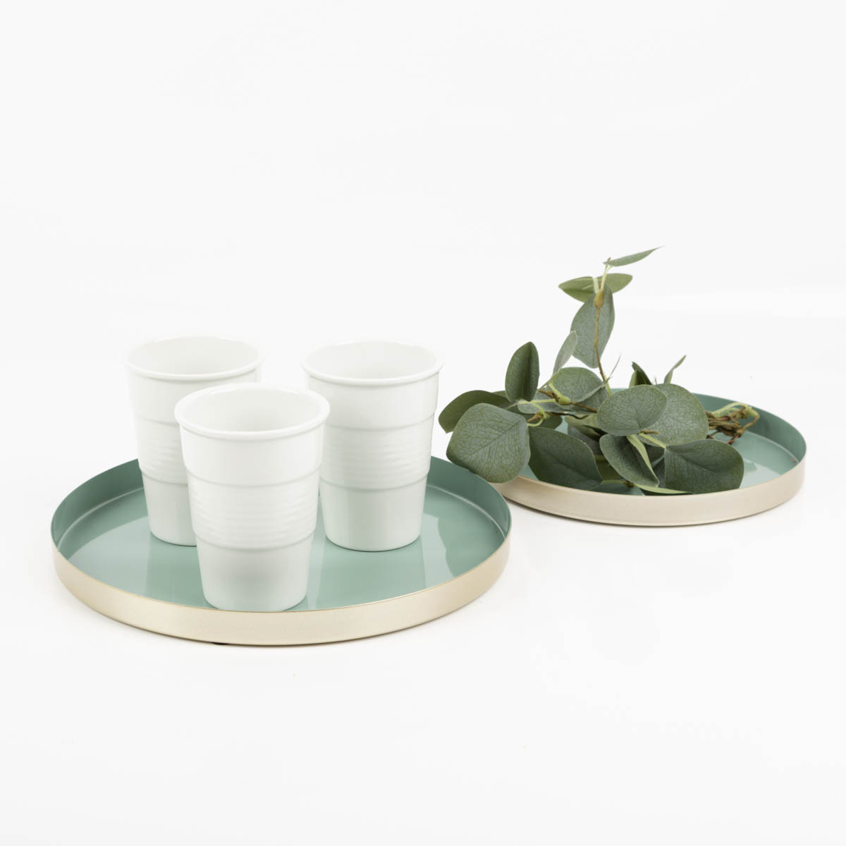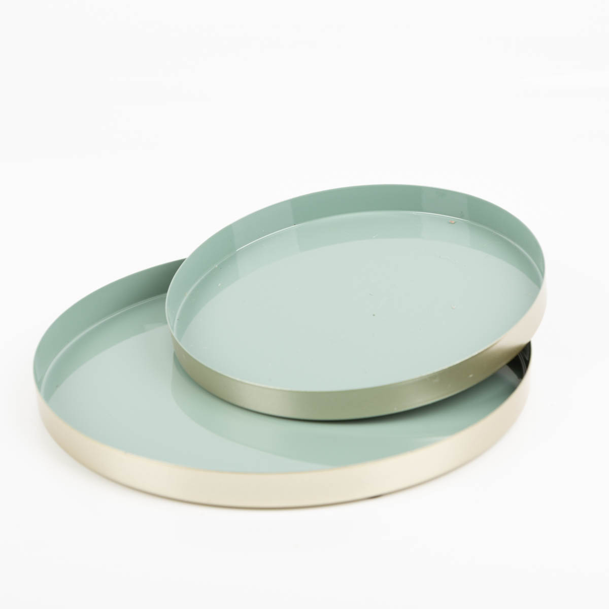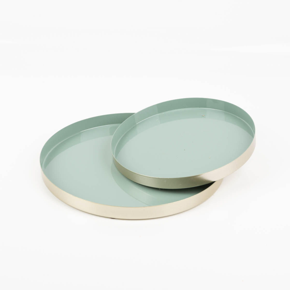 Deko Tablett Set 2-tlg. – eukalyptus-grün & gold-matt von Rayher