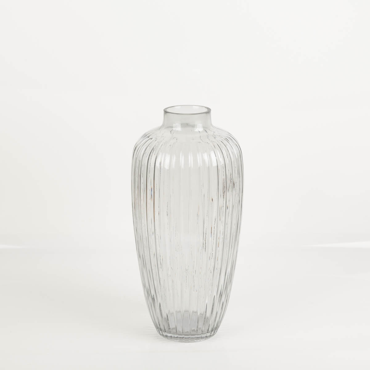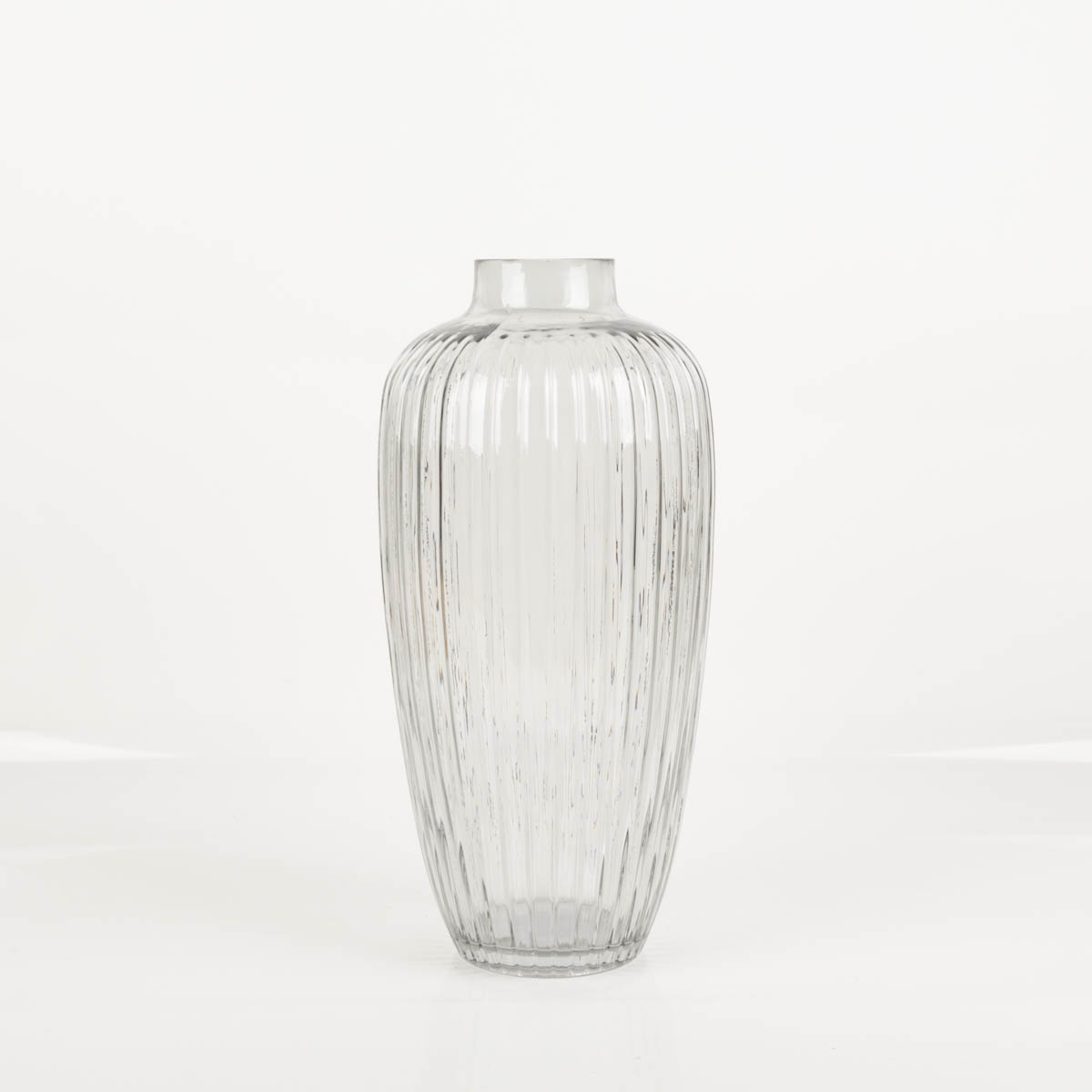 MODERNES DESIGN: Gerillte Glasvase in Grau – dekorativer Blickfang mit schöner Licht- und Reflexwirkung